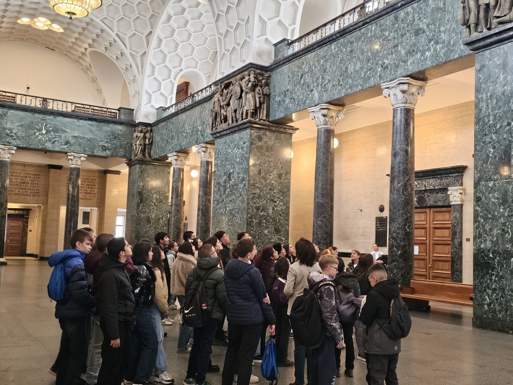 Възпитаниците на СУ „Св. Софроний Врачански“ разгледаха и сградата на Съдебната палата, централното фоайе с орелефите на скулптора Любомир Далчев и таваните „пчелна пита“, както и емблематичната зала „Тържествена“ в сградата. Там научиха имената на архитекти, професори и художници, благодарение на които сградата и залите в нея имат този впечатляващ облик вече близо един век.